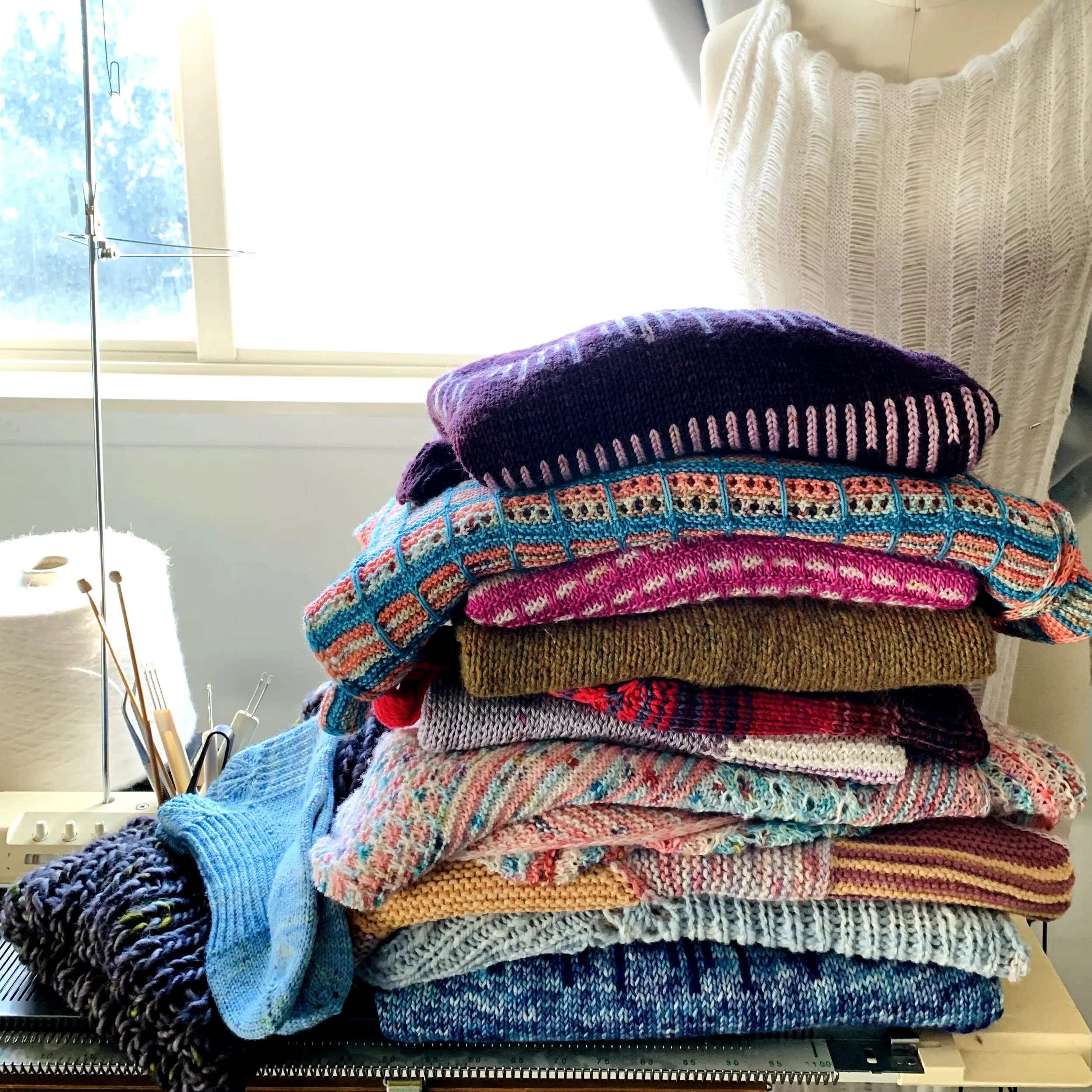 Made 4 knits just for myself: a hat, a pair of socks, a top down sweater, and a bralette.