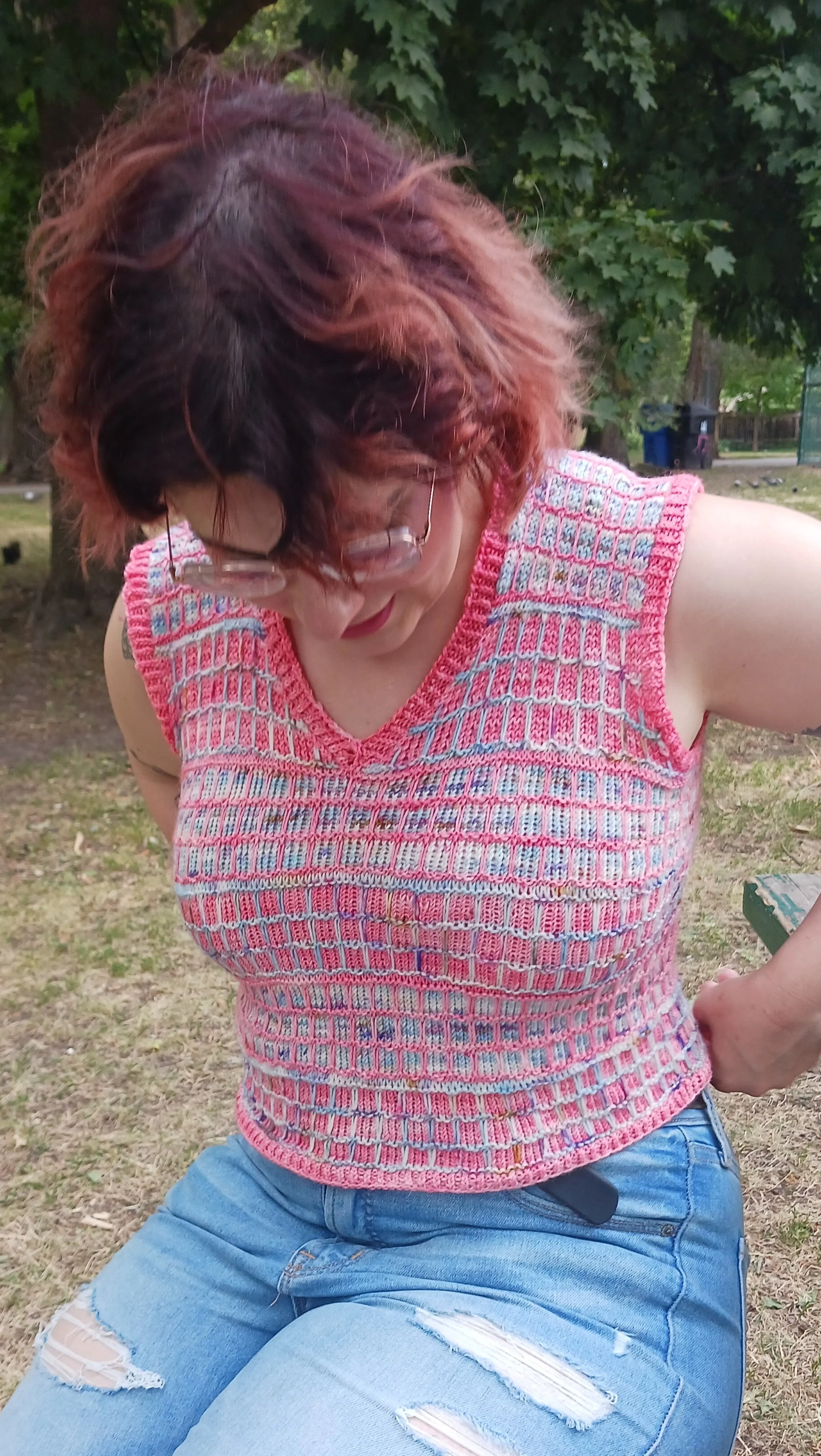 Anne wearing size 3 with negative 2”/5 cm ease. IG: @littleskeinanne
